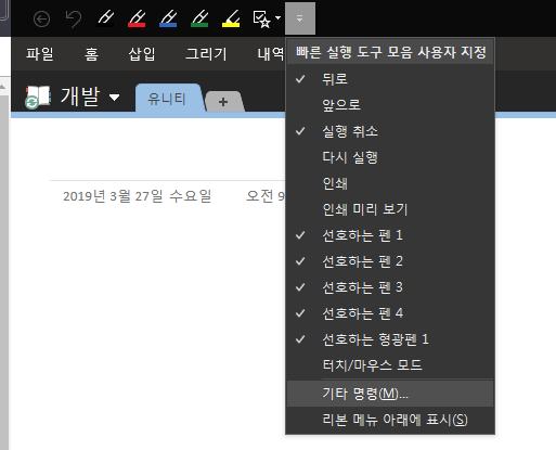 빠른 도구는 좌측 상단에 쉽게 목록 수정이 가능하다.