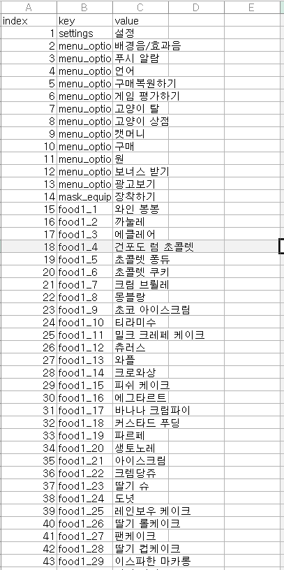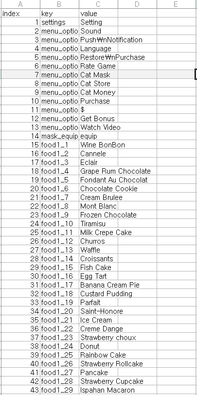 먼저 csv파일로 로컬라이제이션 데이터를 저장한다.