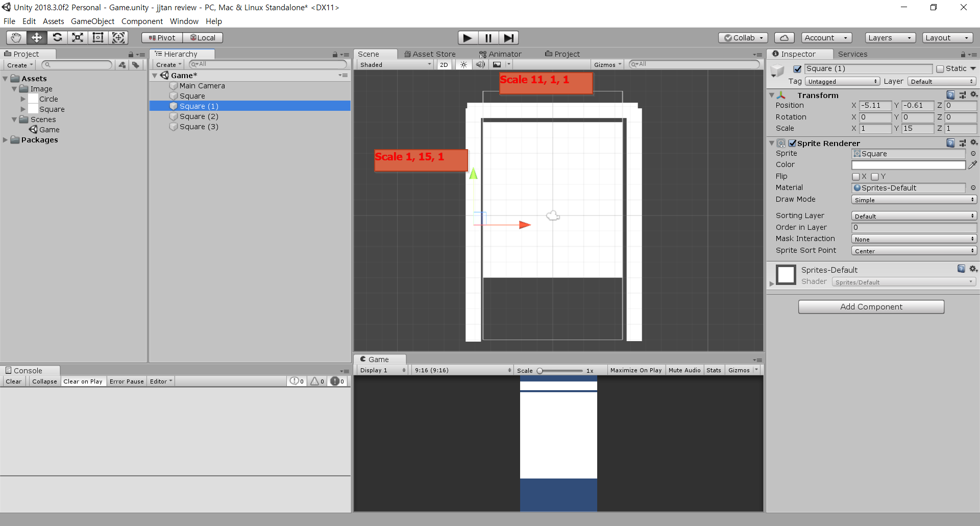 Square Sprite를 끌어다 놔서 오브젝트를 생성한다.