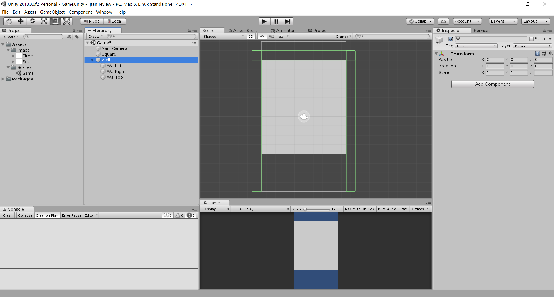 생성한 벽들을 선택하고 Add Component에서 Box Collider 2D를 넣어준다.