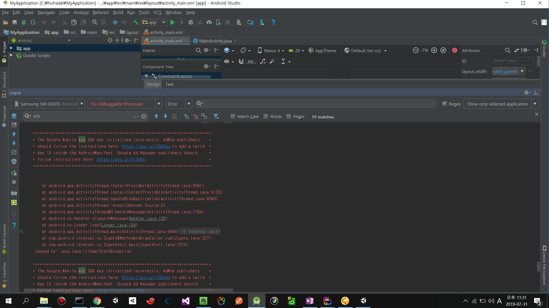 3. 앱 빌드, 실행 시 java.lang.RuntimeException: Unable to get provider com.google.android.gms.ads.MobileAdsInitProvider: java.lang.IllegalStateException 오류