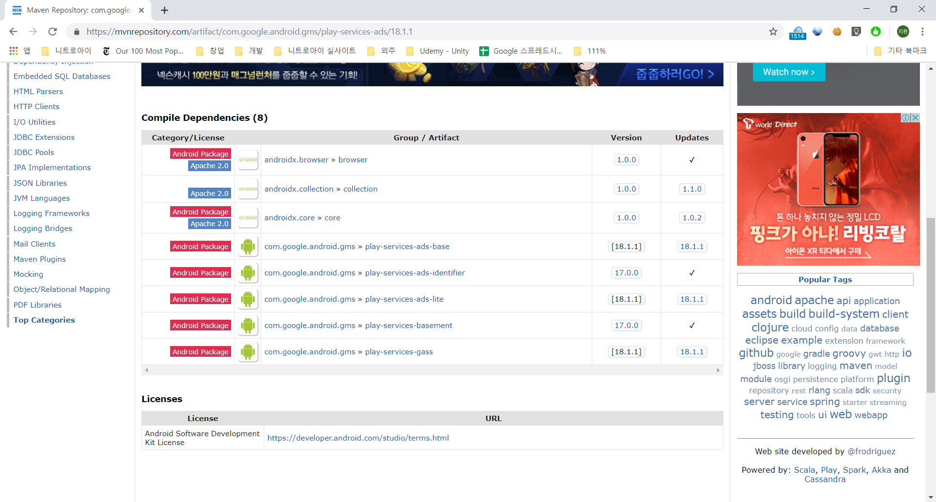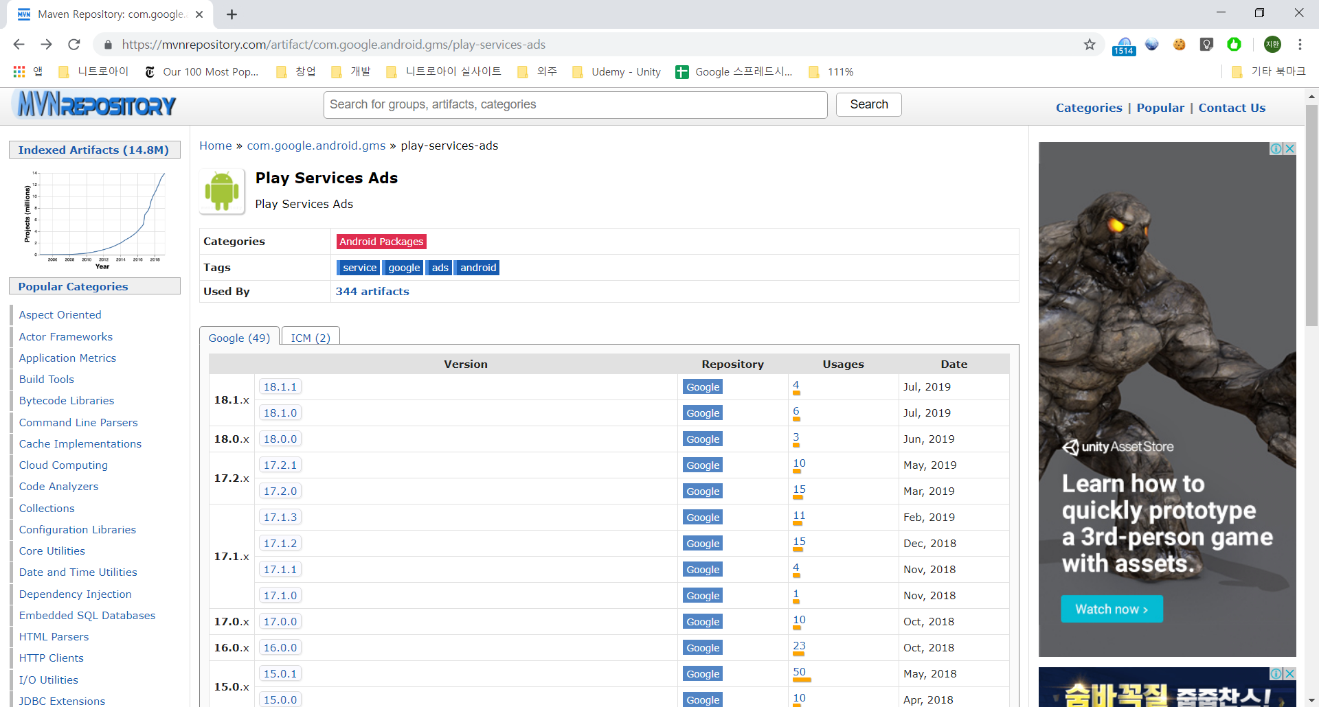 유니티 애드몹 광고 출시 버전 모아놓은 곳