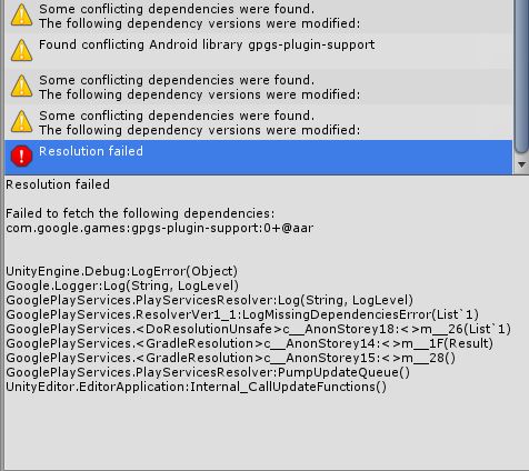유니티 애드몹 패키지 임포트를 하면 알아서 android resolve를 진행하지만 위와 같이 Resoultion failed가 발생하면서 정상적으로 유니티 애드몹 패키지의 설치가 되지 않는다.