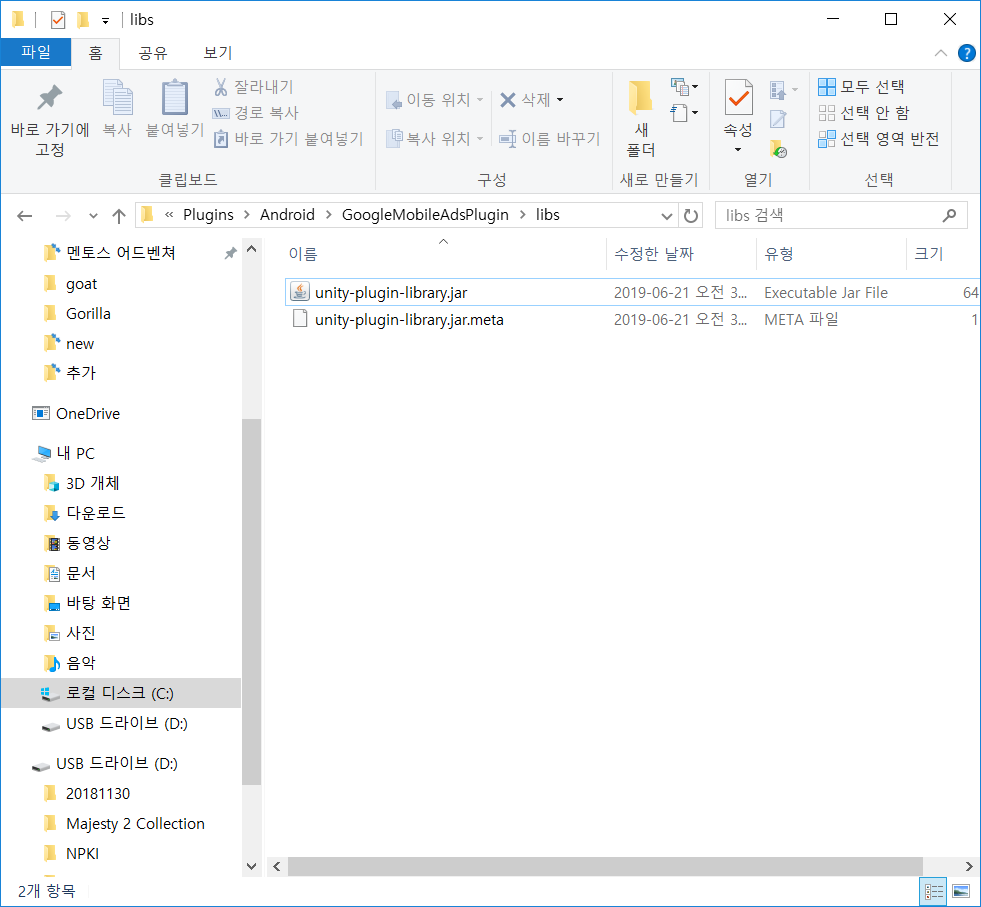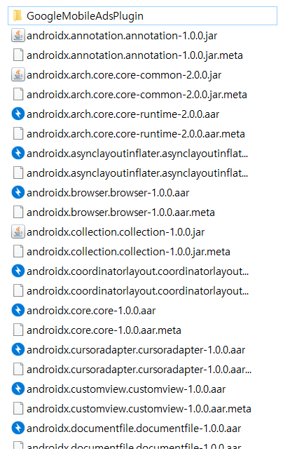 일단 Assets\Plugins\Android 폴더로 가면 aar 파일과 jar 파일이 있다.(본인의 경우 해당 오류가 발생했을때 unity-plugin-library.jar 파일 하나밖에 없었다.)