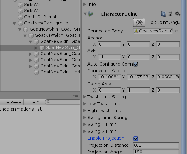 나의 경우 래그돌이 두 개의 문제가 있었다. 하나는 래그돌의 양팔이 벌려지고나서부터는 접혀지지가 않는 문제였고 다른 문제는 신체의 일부가 가만히 있고 연결부위가 엿처럼 쭈욱 늘어나는 문제였는데 둘다 래그돌 생성 시 올바른 오브젝트를 매칭 시키지 않아서 발생한 문제였다.