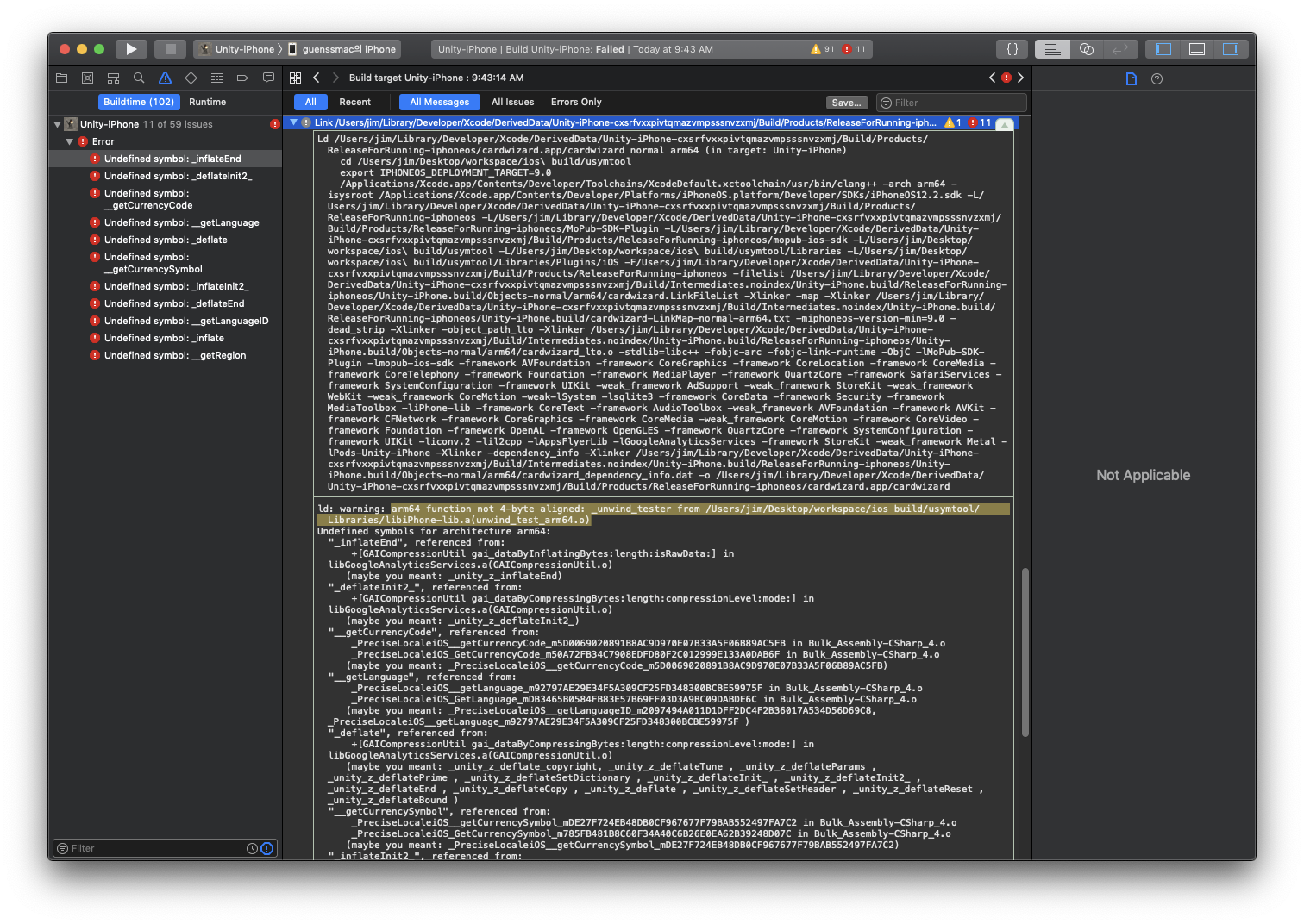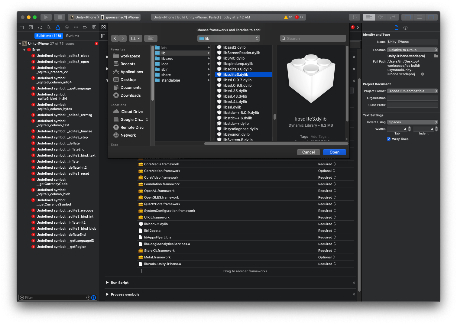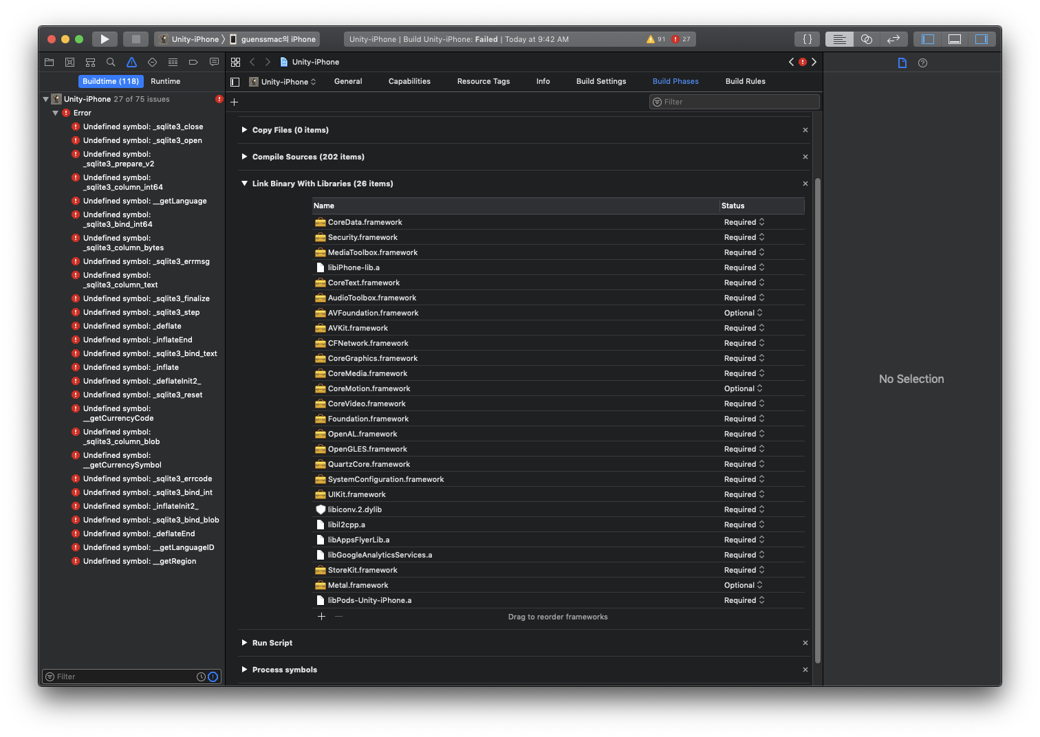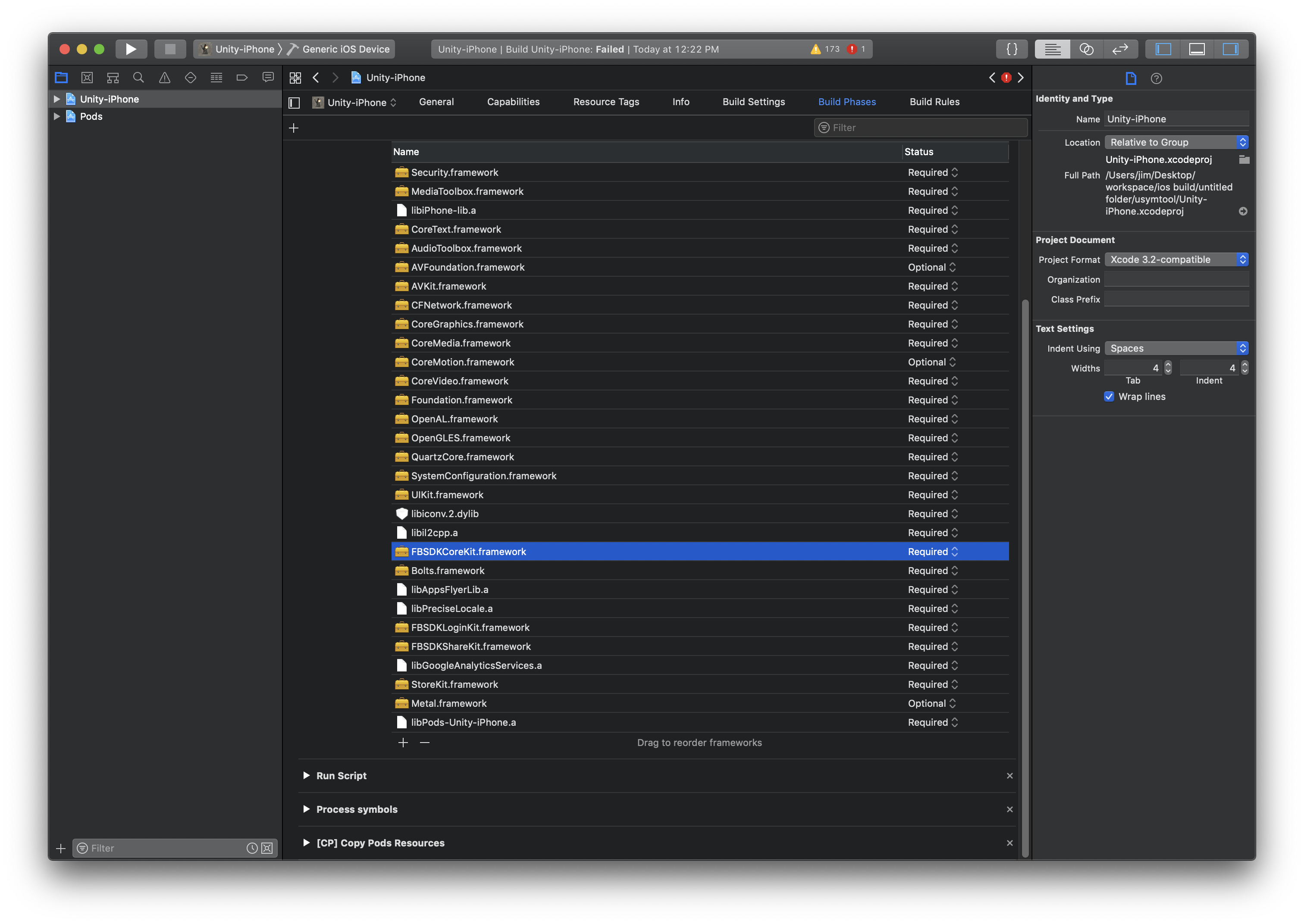 유니티로 ios로 export하고 xcode로 빌드할 때 발생하는 오류를 모아봤다.
