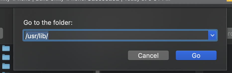 Add Other 클릭 > Cmd + Shift + G를 눌러서 경로 입력창 띄움.