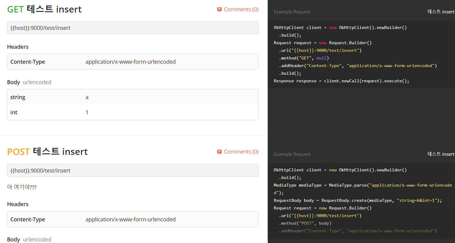 API에 대한 댓글도 달 수있다.