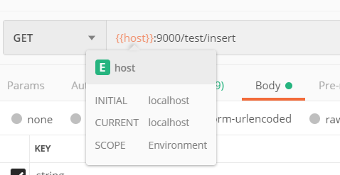 그러고 나서 API를 작성할 때 위처럼 IP 부분에 {{host}}라고 작성하면 아까 입력한 host변수의 값을 불러온다.
