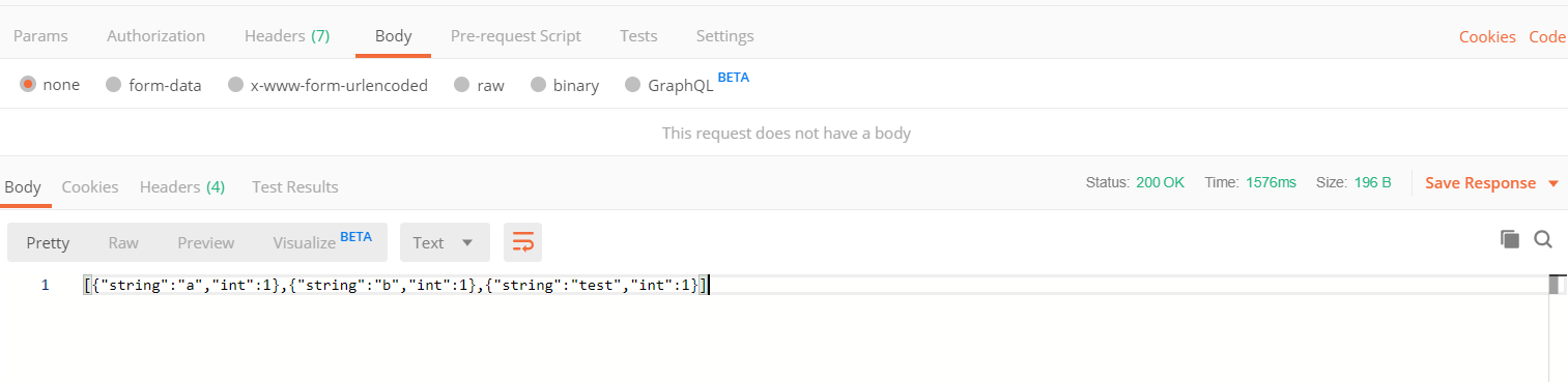 정말 단순한 형태의 API를 생성했다.