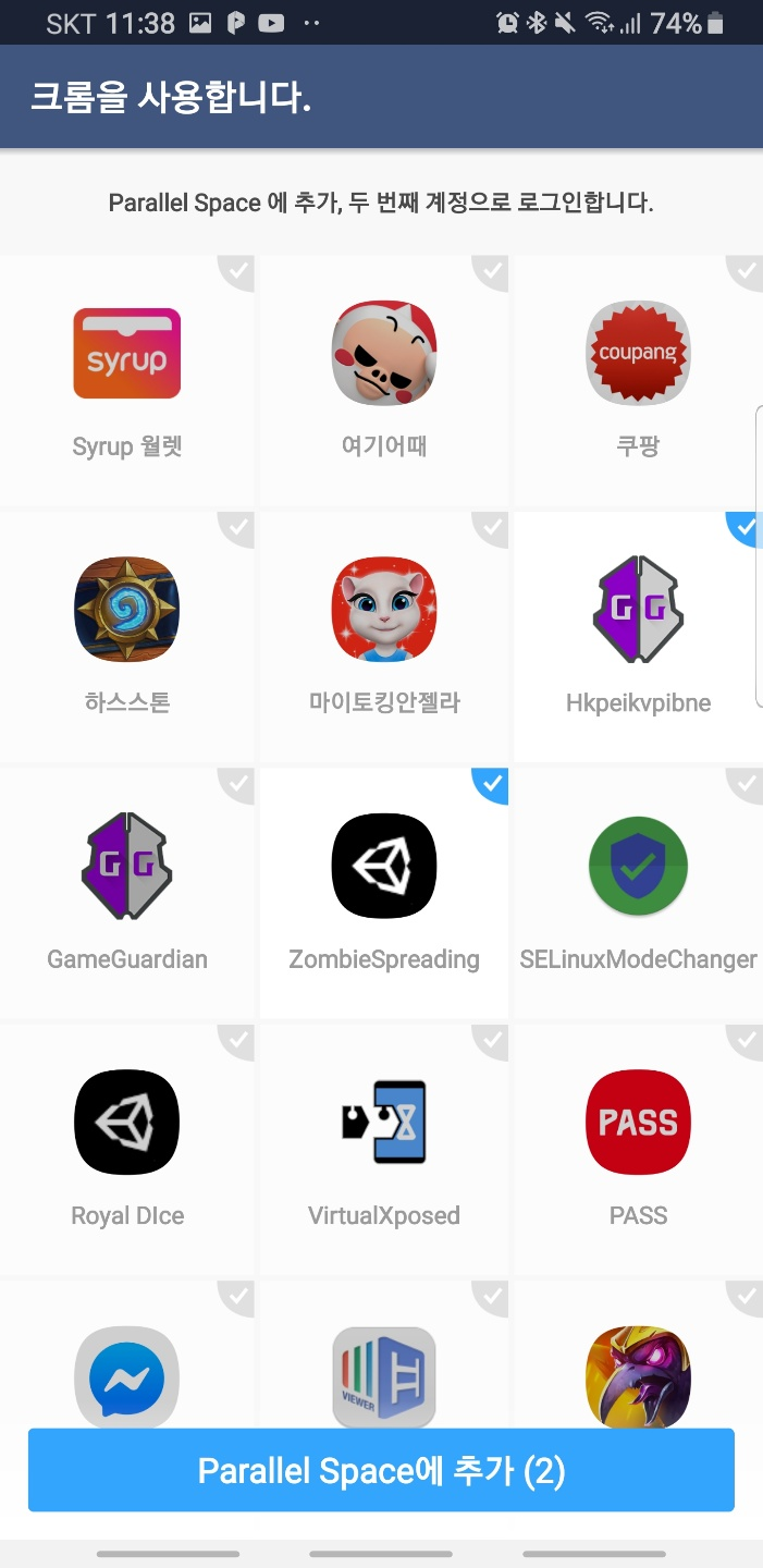 둘 다 써봤는데 xPosed로 게임을 실행해서 로그인하는데 막혀서 Parallel Space로 하기로 하였다.