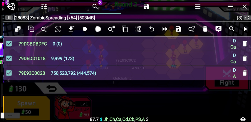 자 그럼 이제 본격적으로 유니티 앱에서 게임 가디언을 통해 메모리 변조를 해볼 건데 간단하게 정말로 게임 가디언이 해킹하는 변수의 주소가 실제 변수의 주소가 맞는지 확인해볼 것이다.