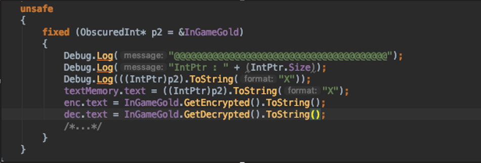 그러면 코드가 위에처럼 int에서 ObscuredInt로 바뀐다.