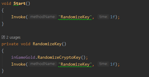 이렇게 되면 1초마다 inGameGold의 암호화 값이 랜덤 하게 값을 가지게 된다.