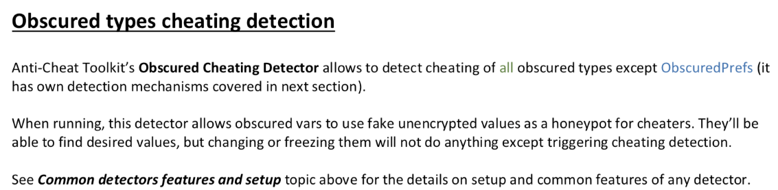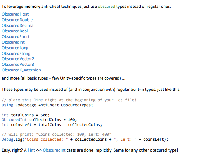 🌎 demo ▶ videos 💬 forum 📄 API reference 💌 support 🕵 Anti-Cheat Toolkit (ACTk) 🕵 is here to add some extra pain to the guys who cheat / hack / crack something in your game. Includes various anti cheat tricks and techniques in one place, easy to use, with fu