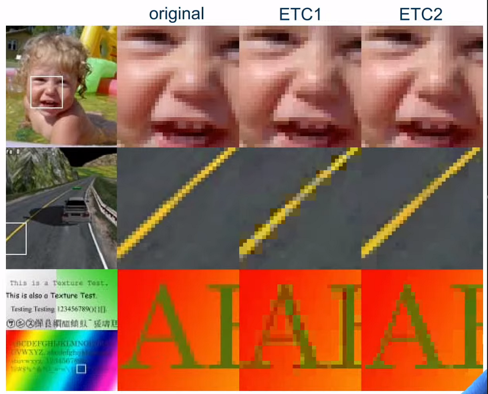 ETC1과 ETC2가 있는데 ETC2가 좀더 블록현상이 완화됨
