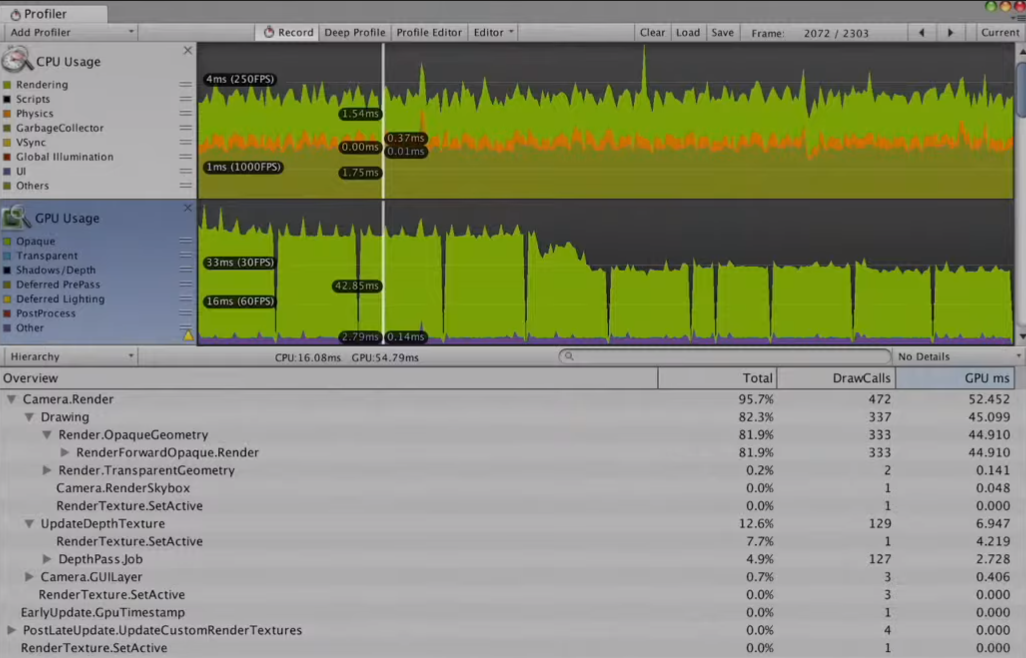 에디터에서 측정한 성능과 타겟 플랫폼에서 측정한 성능은 전혀 다르게 나올 수 있으니 맹신하면 안 된다.