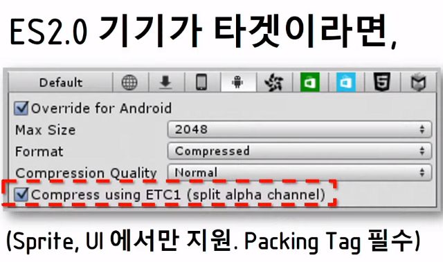 주의할 점 : 완전 옛날 기기에서 ETC2 포맷을 사용하면 메모리에 원본 텍스쳐가 올라가버린다.
