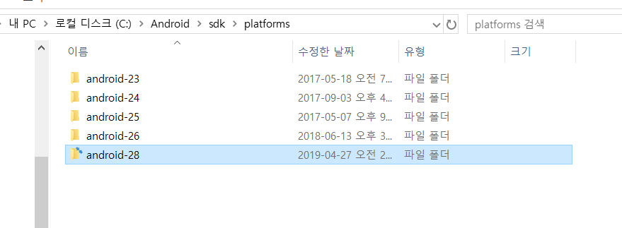 우리가 필요로 하는 것은 저 녀석들이다. platforms;android-29, platforms;android-30