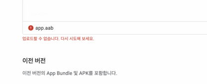 새로 바뀐 플레이스토어에서 apk 또는 aab를 업로드하면 위와 같이 원인은 안알려주고 에러메시지만 틱 뱉는다.