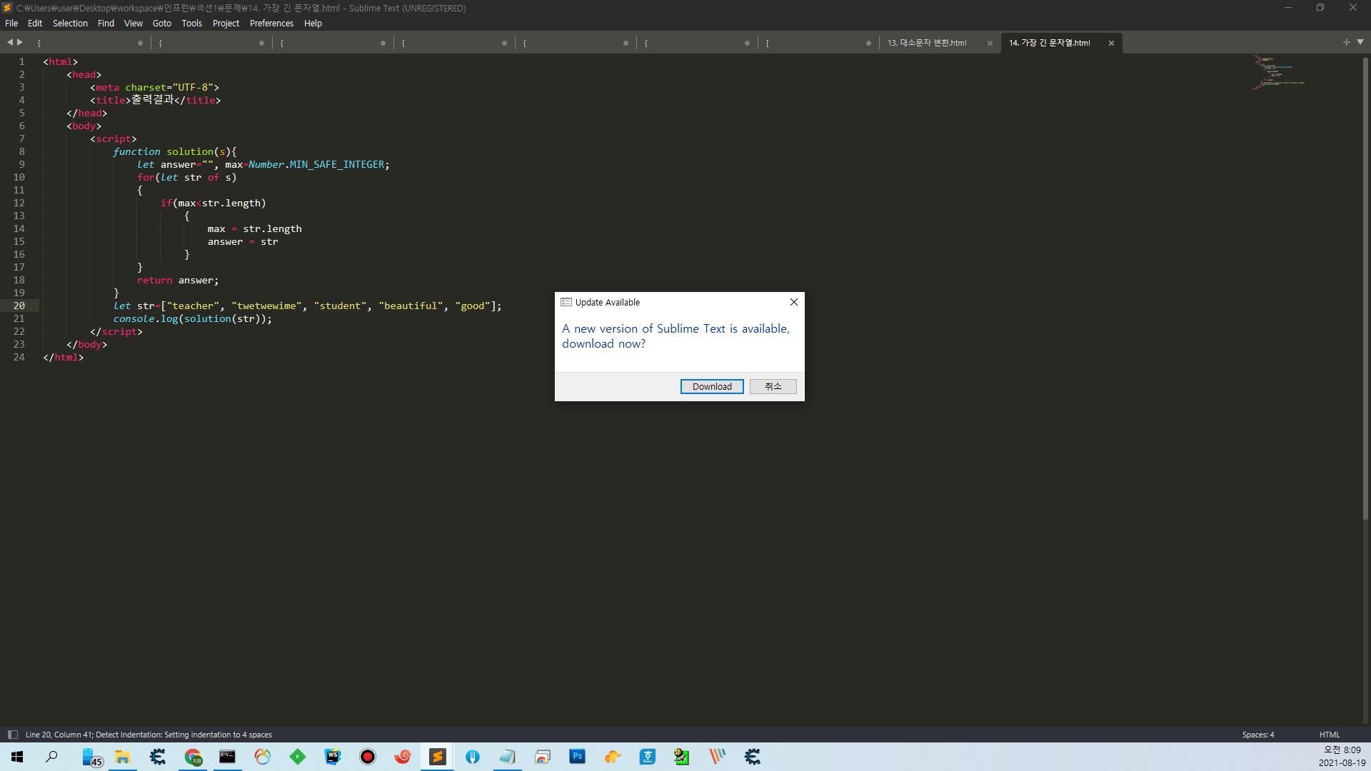 너무 친절한 우리의 서브라임텍스트는 업데이트 팝업을 실행할때마다 띄워준다 개같네 진짜