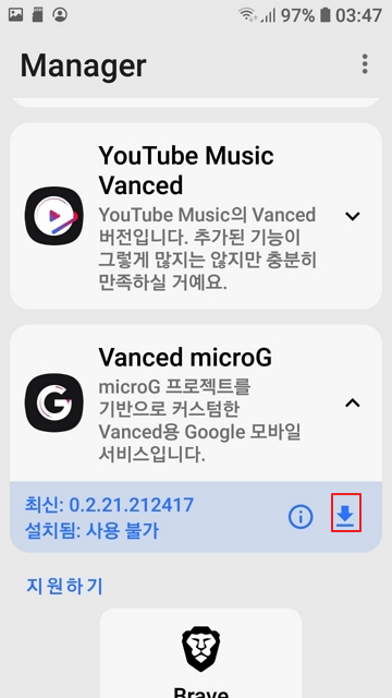 microG의 다운로드 버튼을 눌러서 설치한다.