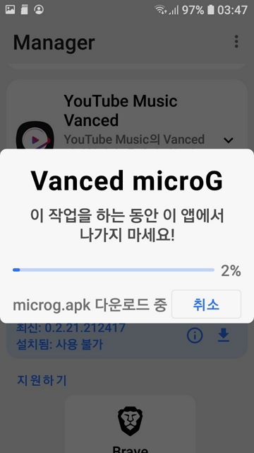 다음은 Youtube Vanced를 설치한다. 이건 유독 오래 걸린다. 한 2분 정도?
