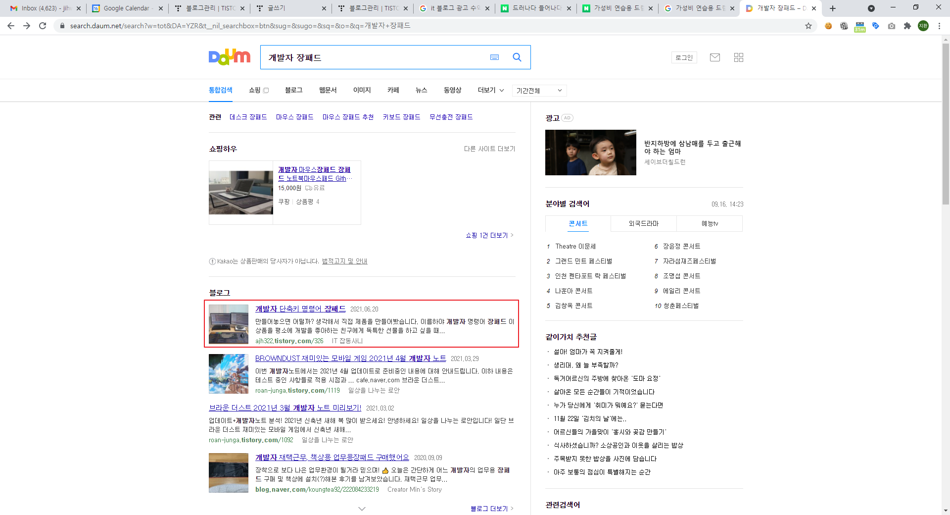 본인의 블로그는 IT 분야 한정 글을 작성하면 네이버, 구글, 다음 3개 엔진에서 어지간하면 1페이지에 노출되는 영향력을 갖고 있다.