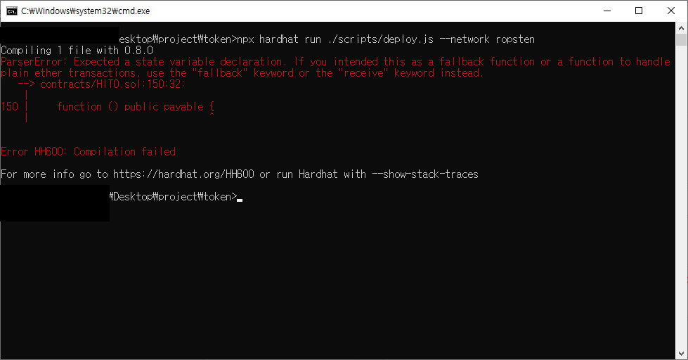 For more info go to https://hardhat.org/HH600 or run Hardhat with --show-stack-traces