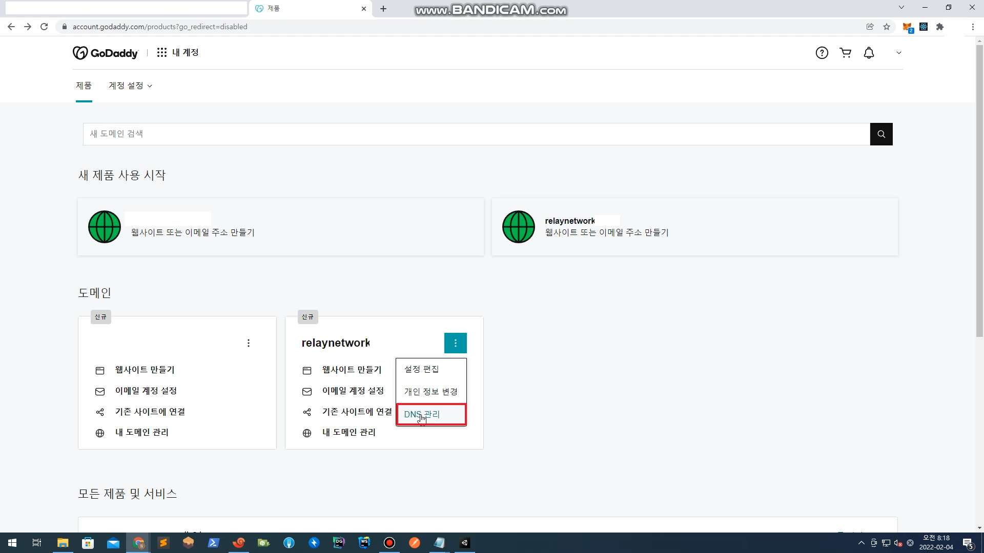 Godaddy에서 도메인 즉당한거 사고 관리 페이지에서 ... 눌러서 DNS 관리로 들어간다.