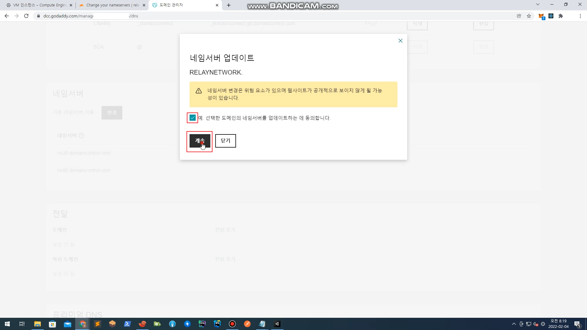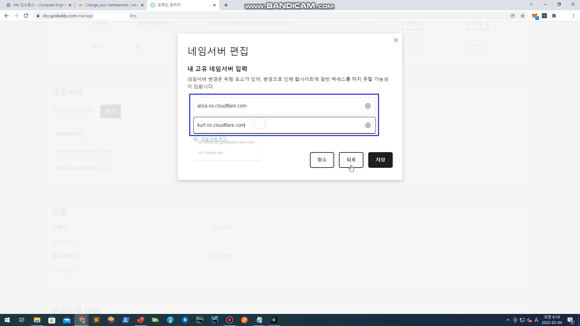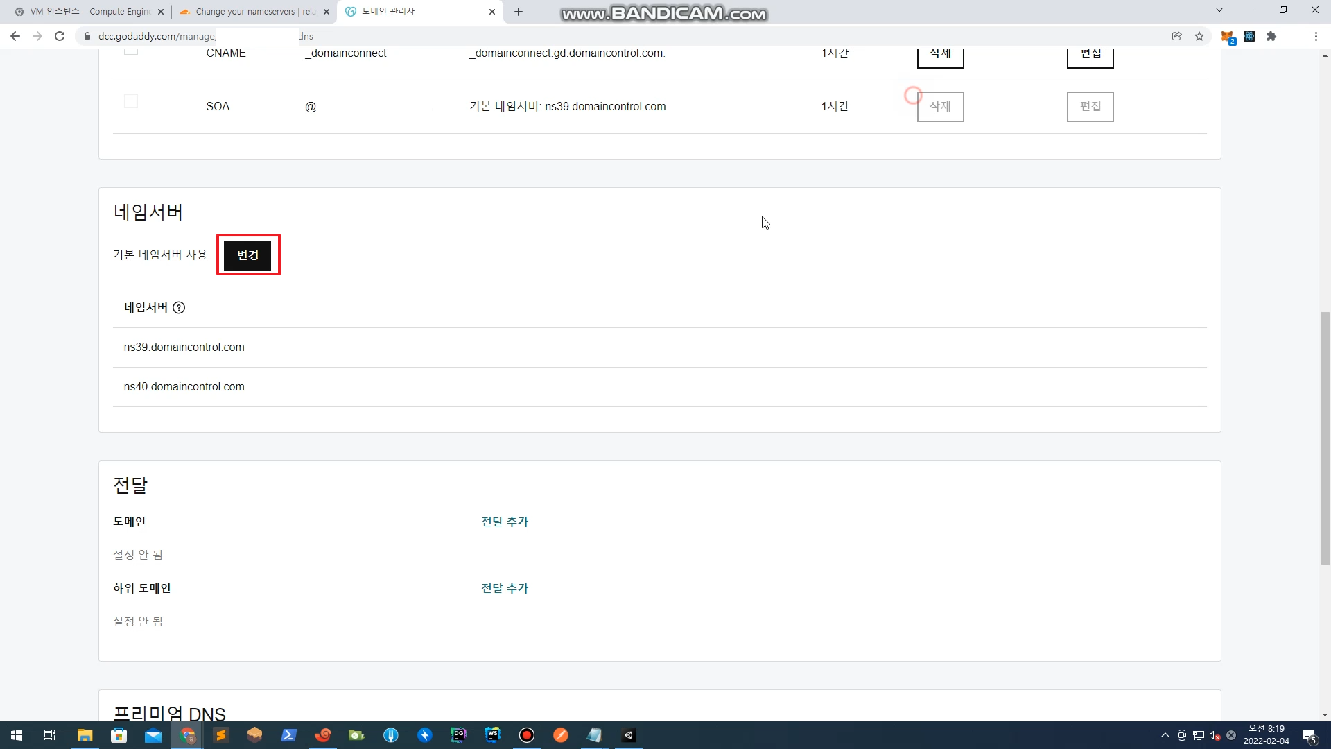 네임서버 > 변경 클릭