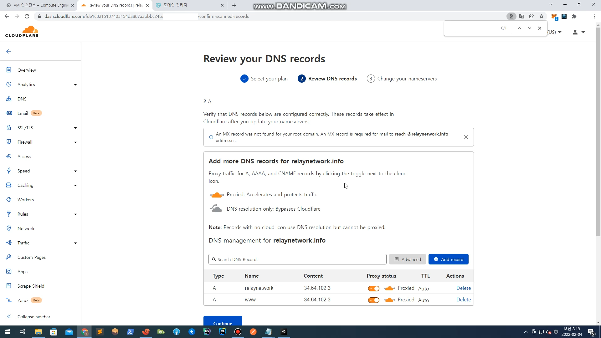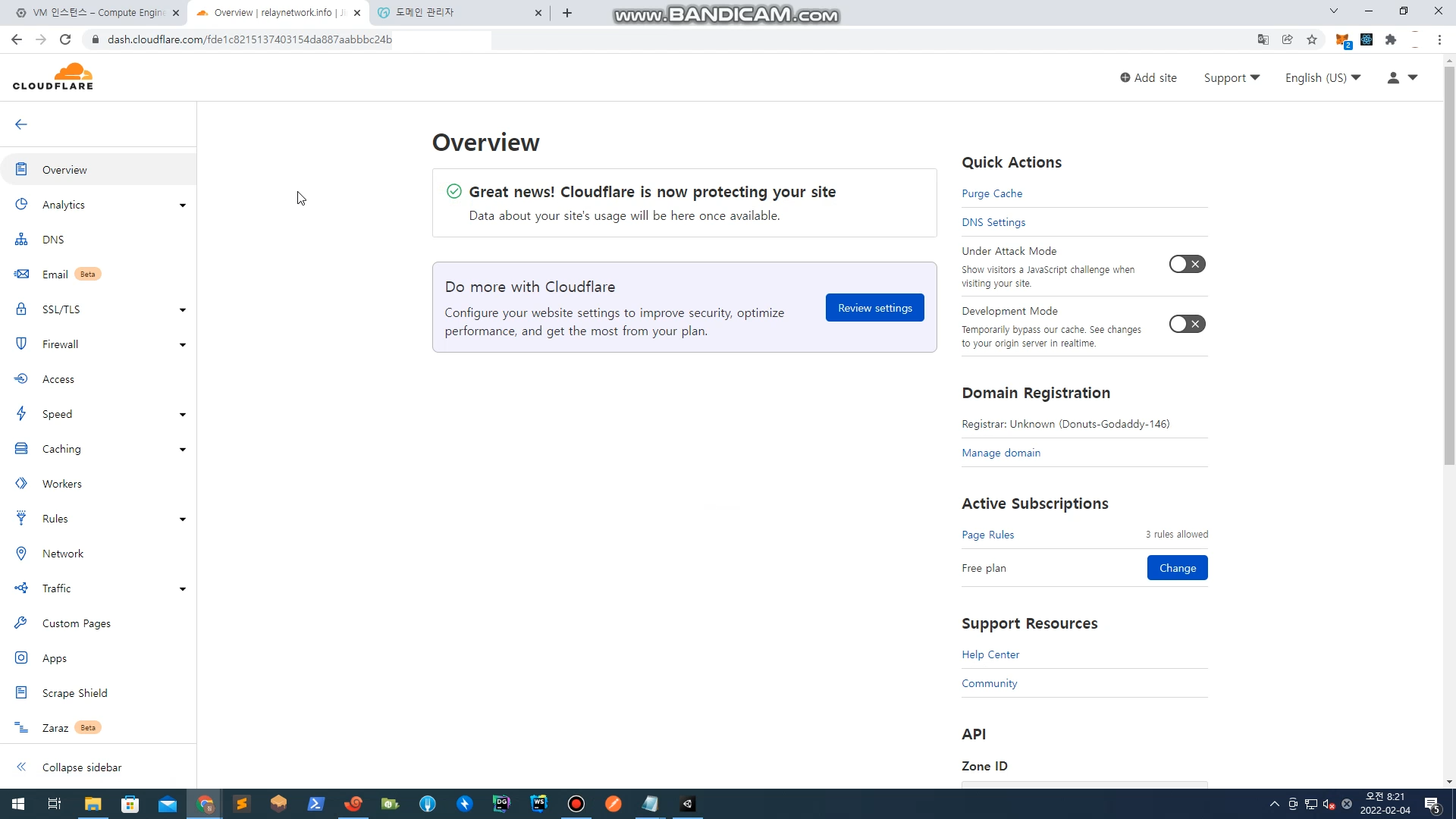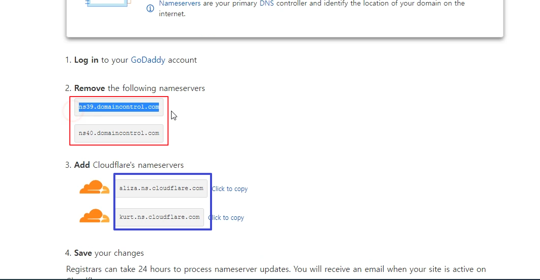 이번 릴레이 서버 구축 1편에서 할 작업은 Godaddy의 도메인과 Cloudflare를 연동하는 것이다.