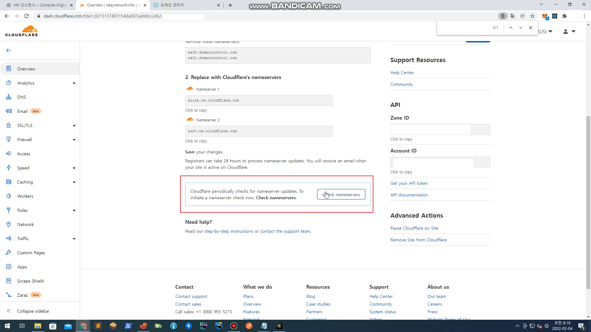 하단의 check nameservers 클릭