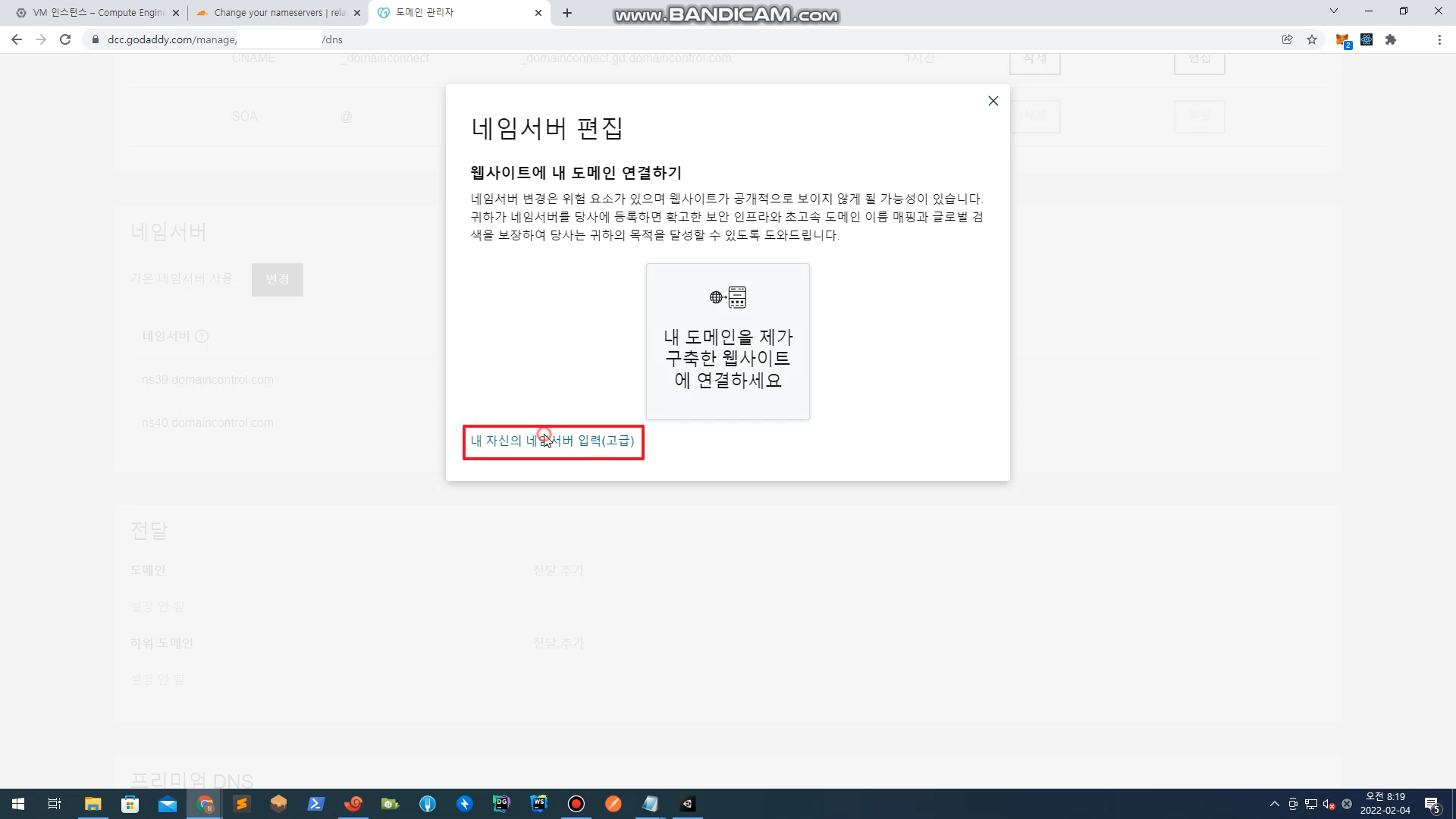 내 자신의 네임서버 입력