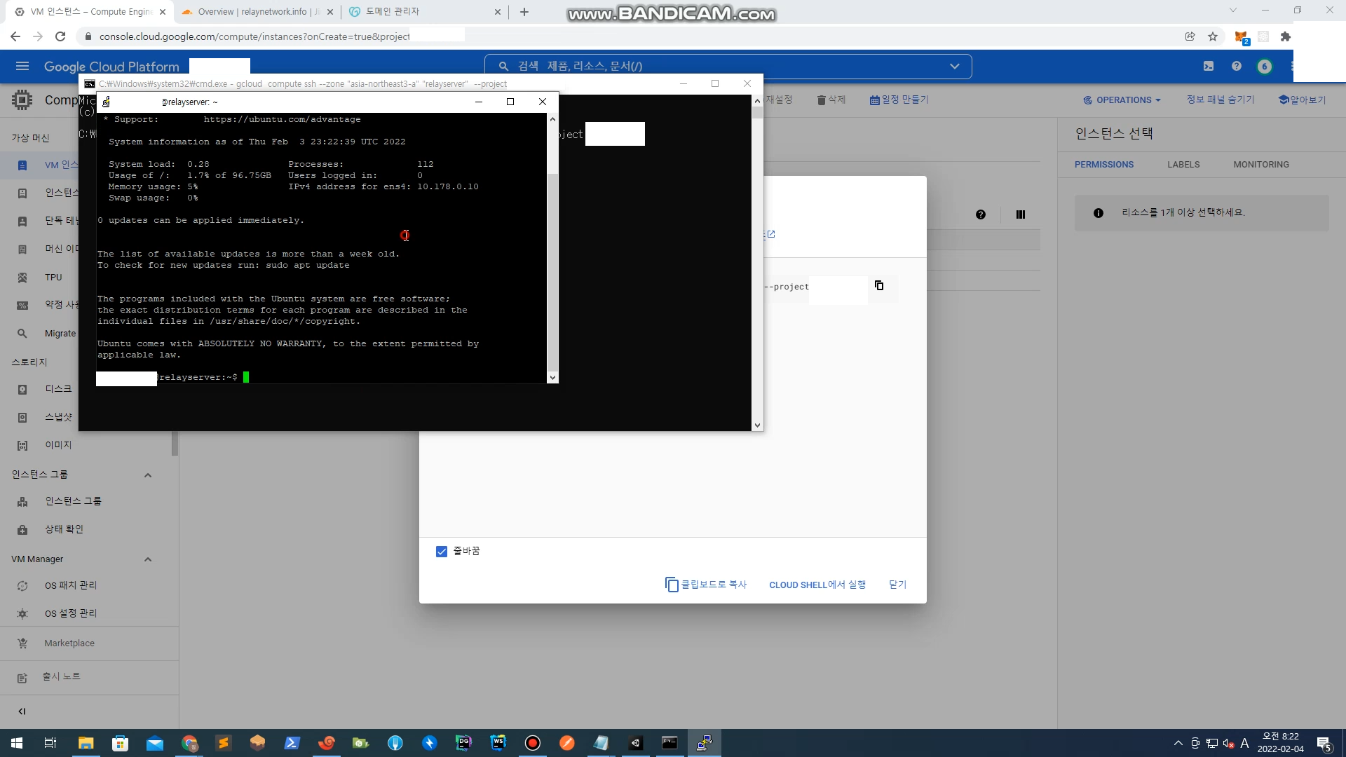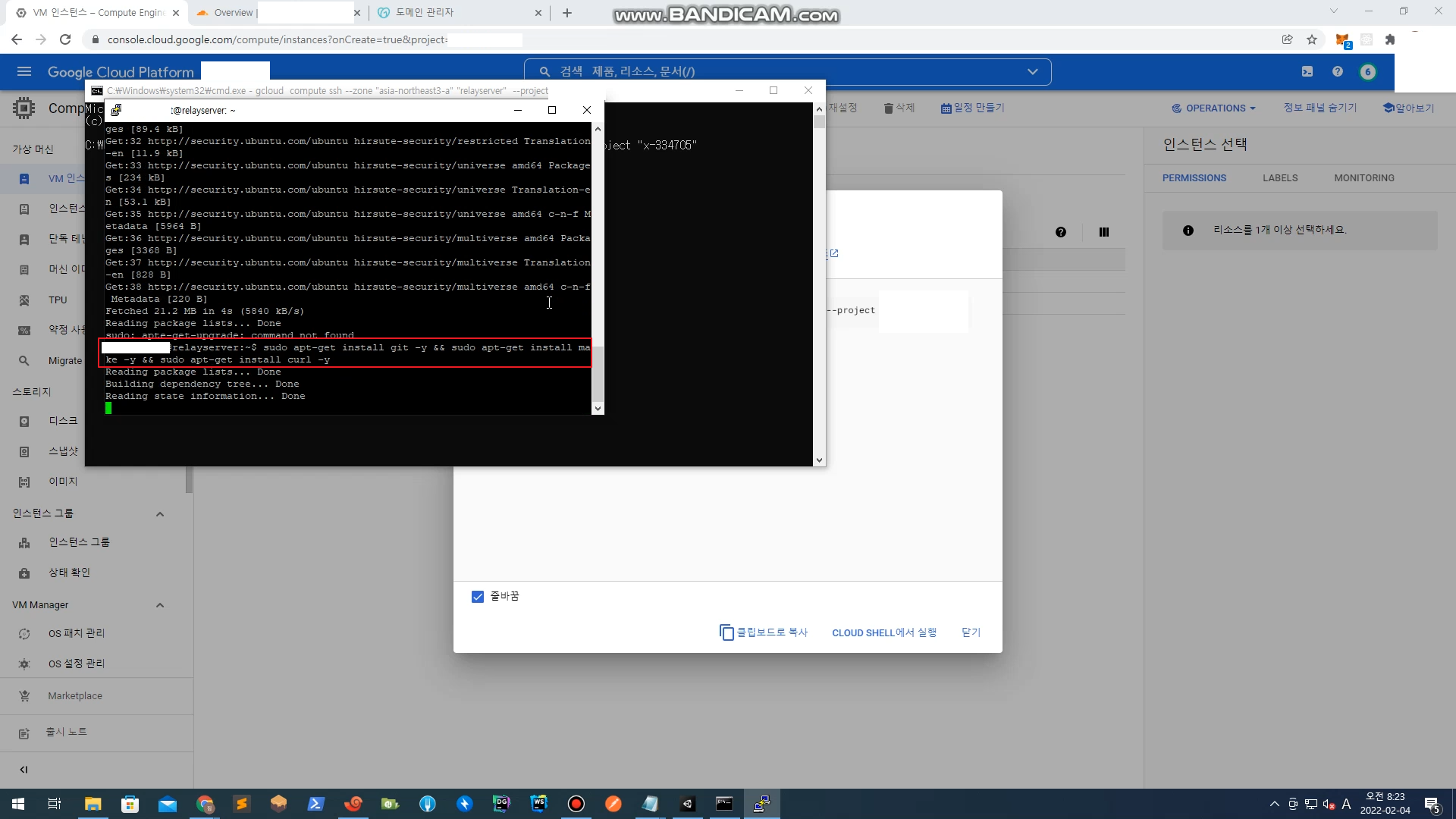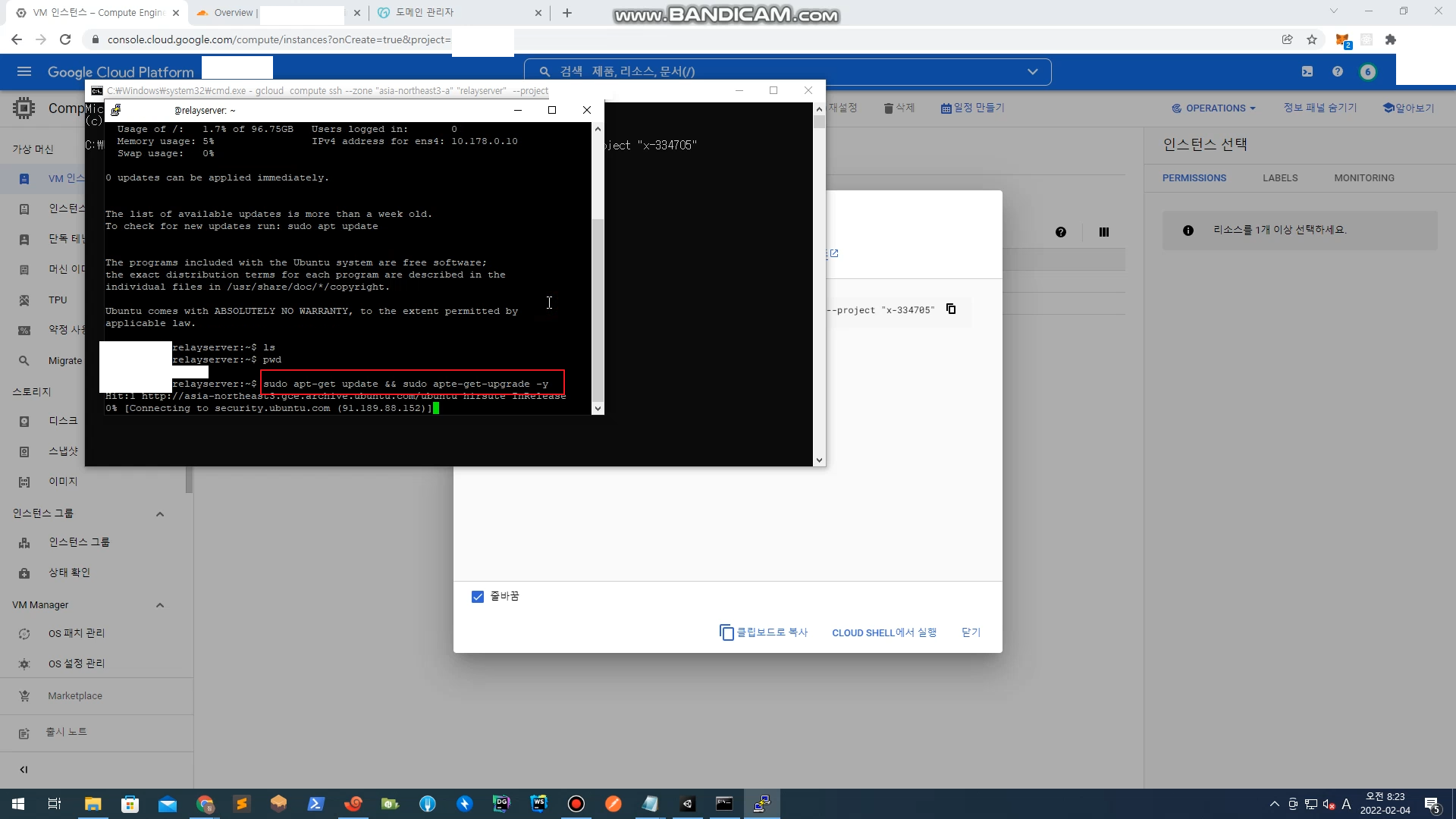 GCP 프로젝트 생성, 필수 라이브러리 설치, 릴레이 서버 Git 프로젝트 클론