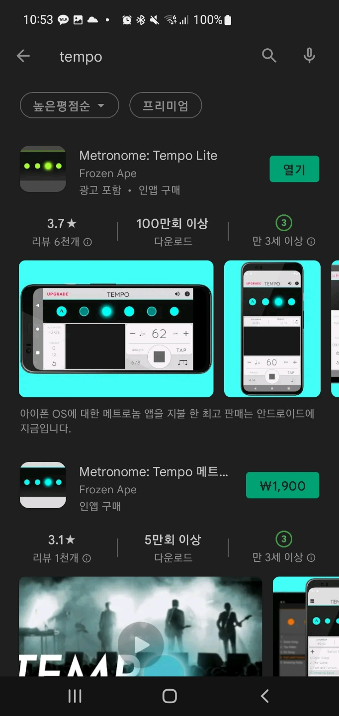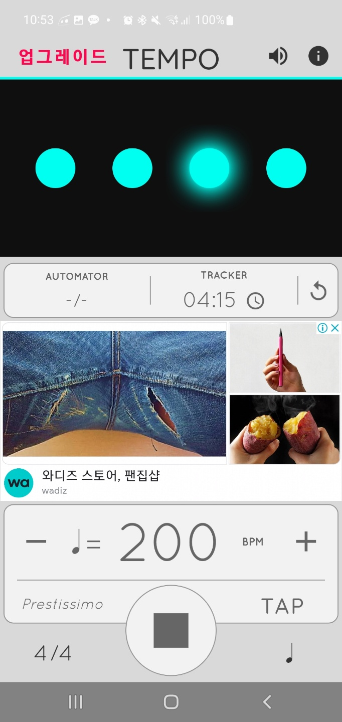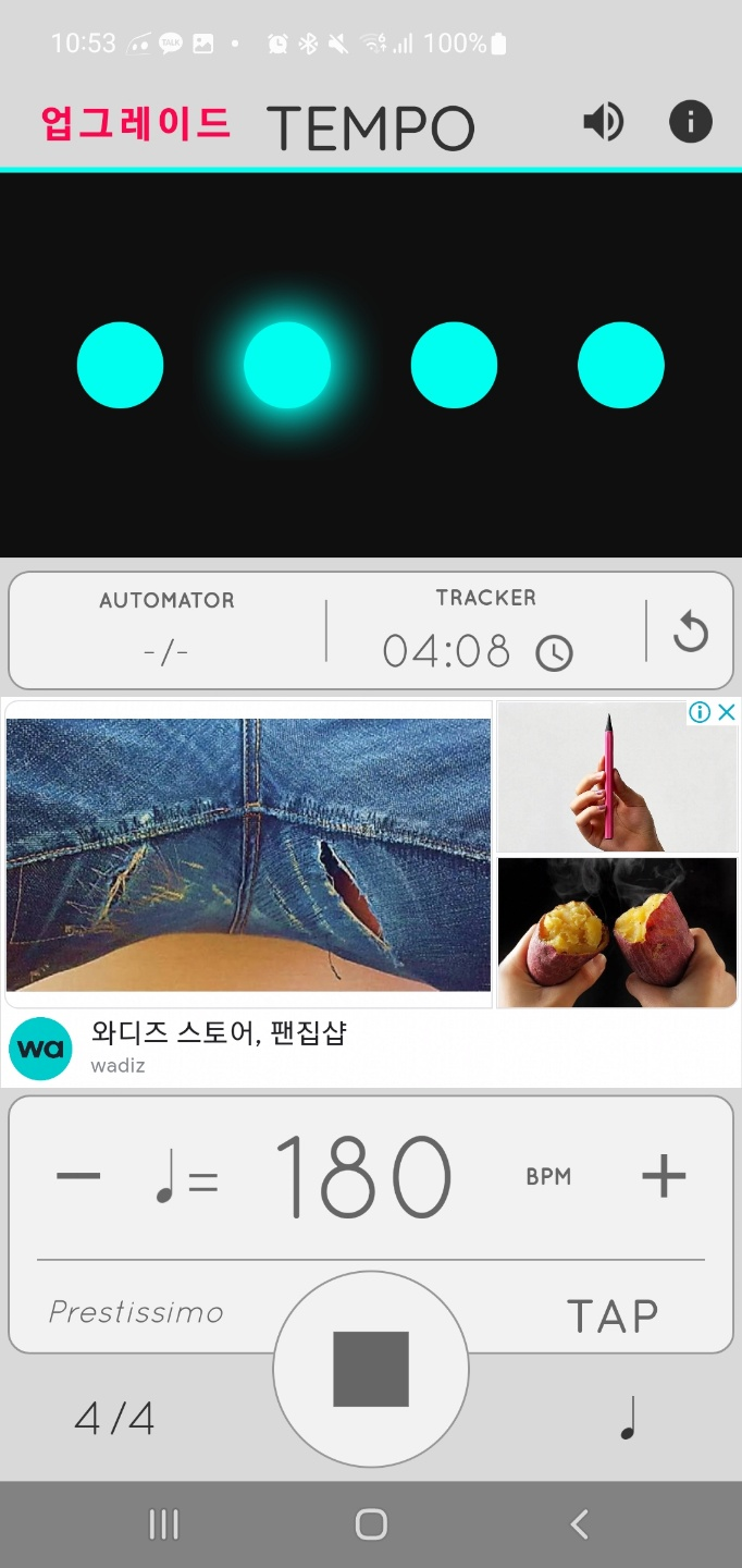 앱 중에 BPM 소리를 내주는 앱이 있습니다. 저는 Tempo라는 앱을 쓰는데요.