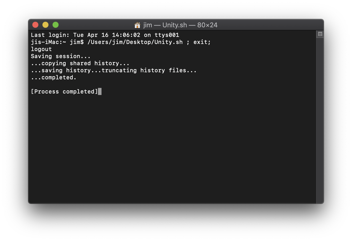 기존에 생성한 Unity.sh의 위치가 바뀌면 안 된다.