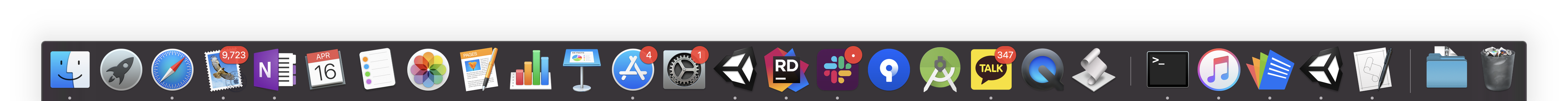 dock에서 프로그램을 클릭하여 유니티를 실행할 수 있다.