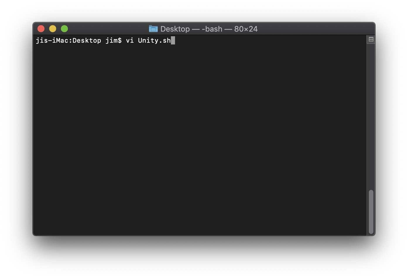 바탕화면에 vi Unity.sh 로 스크립트 파일 생성