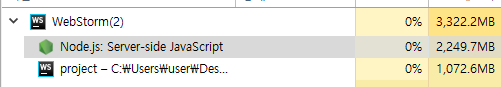 작업 관리자에서 Node가 차지하는 메모리를 보면 2000mb인 것을 볼 수 있다. 말도 안 되는 상황이지 않는가?