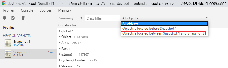 메모리 부하를 일으킨 다음에 메모리 스냅샷을 떠서 용량이 많이 차지하는 덩어리를 한번 까보는 것이다.