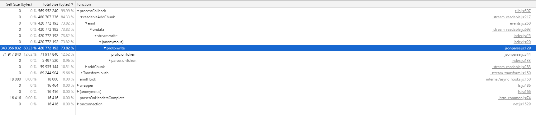 혼자서 무려 메모리 사이즈의 99.99%를 차지하는 불순한 녀석이 보인다. 저 녀석의 하위 트리를 따라내려가보면서 쭈욱 살펴보도록 하자