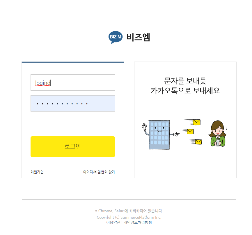 비즈엠 로그인할때 쓰는 로그인 ID