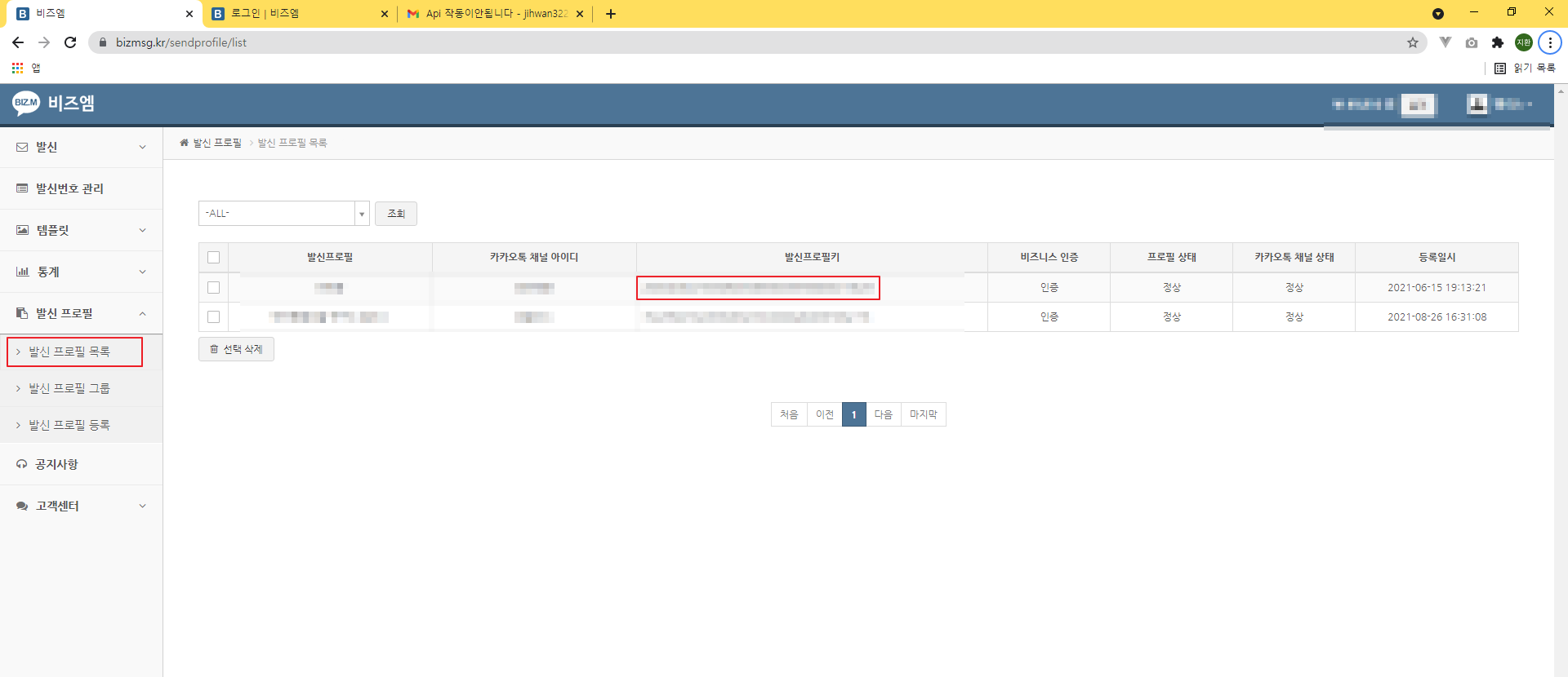 비즈엠 발신프로필키