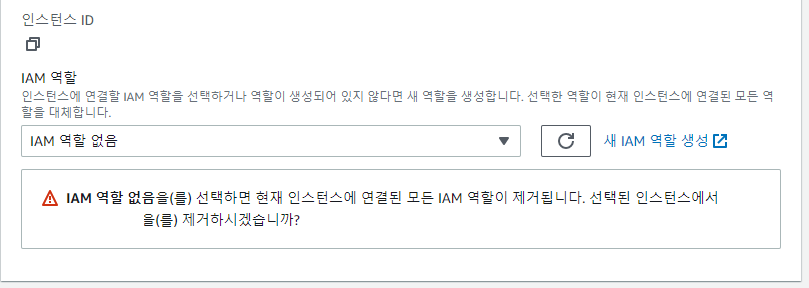 근데 찾아보면 'IAM 역할 없음' 선택 후 저장하면 된다고 하는데 그래도 위 에러가 계속 발생하는 경우가 있다.