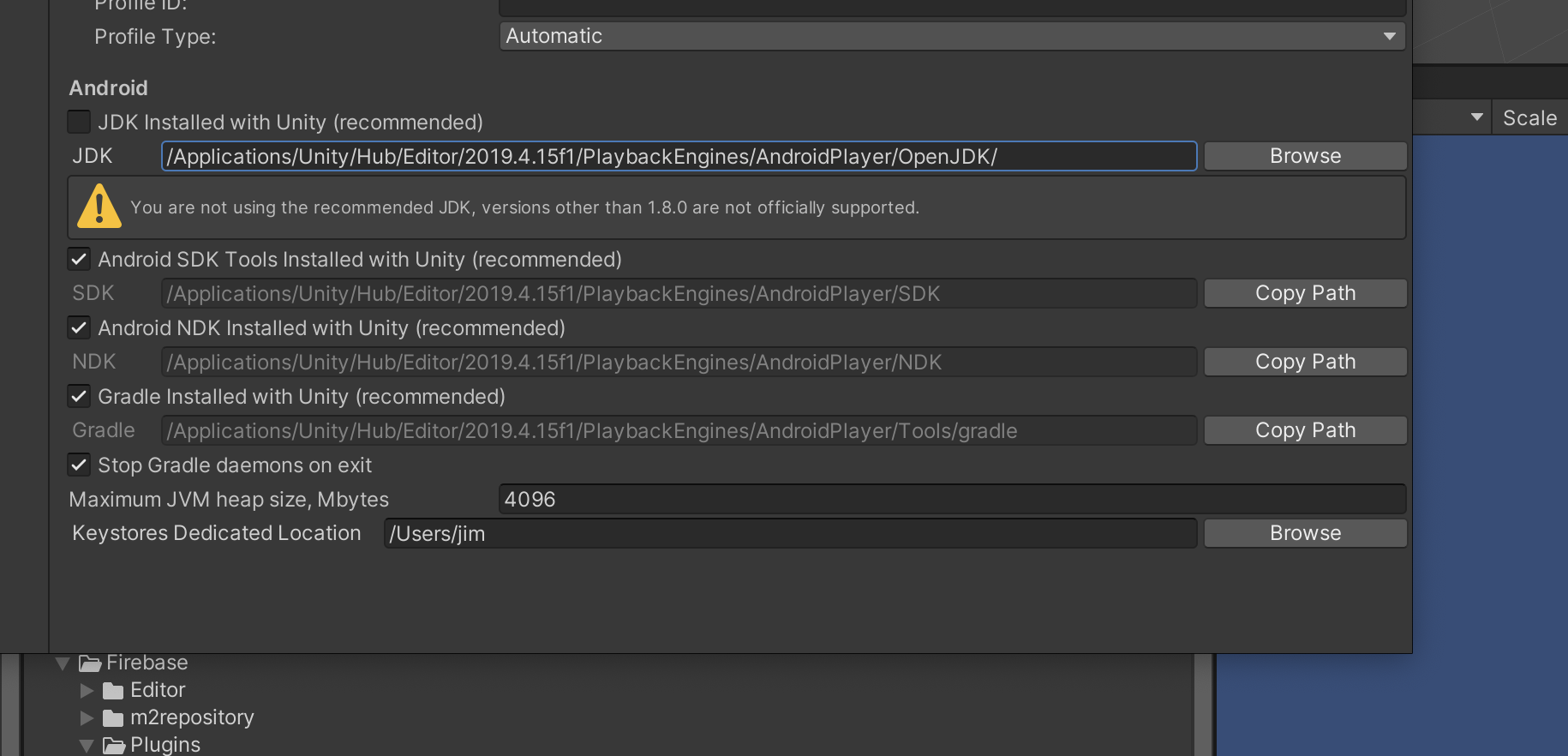 Edit > Preferences > External Tools > JDK Installed with Unity의 경로의 자동 설정을 체크해제 > 맨마지막에 슬래시 추가