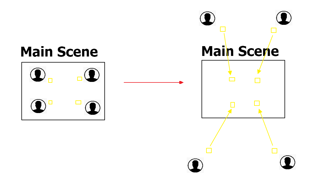 반면에 하나의 씬에 모든 것을 프리팹화 시켜놓고 각자 작업할 프리팹을 수정하며 목표로 하는 씬의 직접적인 수정은 가하지 않는다면 머지컨플릭트가 발생하지 않는다.