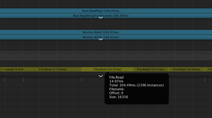 프로파일러로 확인해봤더니 File.Read에서만 2000개의 인스턴스가 생성되어서 지연되는 것으로 확인되었다.